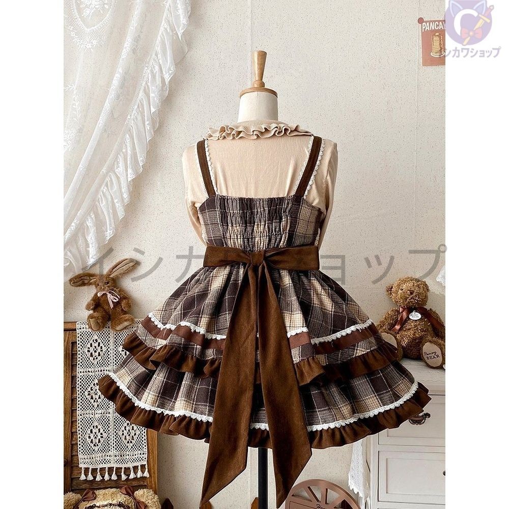 リボングリッドケープ 秋冬 ロリータ サロペットワンピース 3点セット ニット素材 おしゃれ 甘ロリ フォーマル パーティードレス 新年会 特別な日 プレゼント 清楚系 感