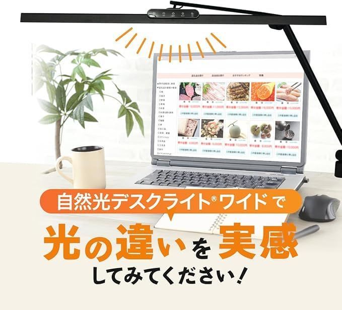 【目を労わる優しい光のデスクスタンド】太陽光に近い波長、自然光を再現した、色の再現性に優れた卓上ライトです。さらに、ちらつきなしの設計で、目に負担をかけず快適に使用できます。