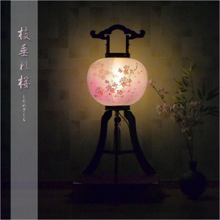 盆提灯 仏縁堂コラボ 八女提灯 大内行灯11号一対 紫檀調 本絹二重 絵付師 手描き 枝垂れ桜