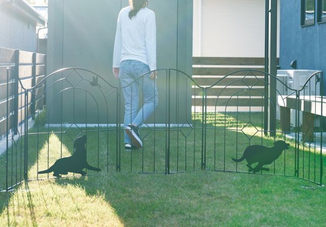 フェンス 折りたたみ ゲート 屋外 柵 アイアンフェンス おしゃれ シルエットゲート Dog Watch ブラック 黒 幅141×奥行31.5×高さ76 cm 1台単位 ガーデニングフェンス ガーデニングオブジェ 園芸フェンス 庭 サークル ペット 愛犬 ガーデ