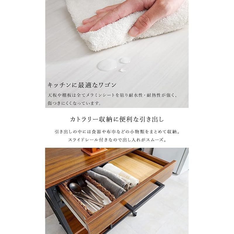 商品名:萩原(Hagihara) キッチンワゴン ラック メラミン天板 キャスター 引き出し 可動棚 付き 幅60 ブラウン 1台 LW-4530BR