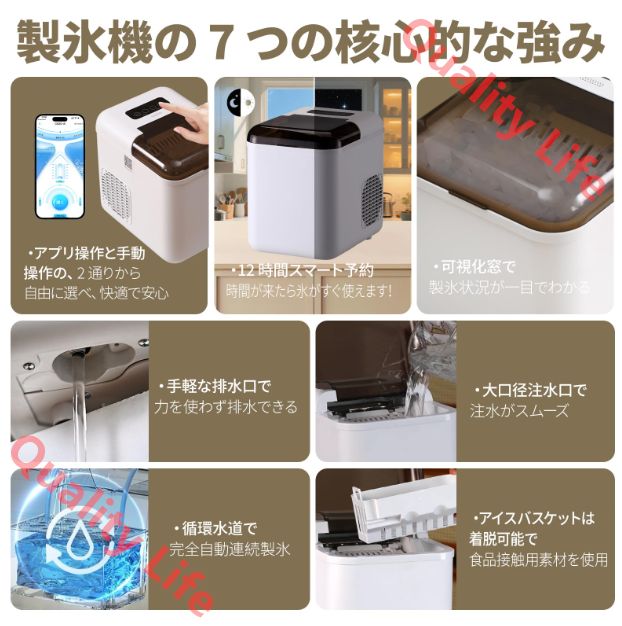 【操作簡単,高齢者も使いやすい】:“スマホ操作 製氷機 日本語対応アプリ,3 ステップで設定完了。 (注:アプリのインストールは簡単:商品ページの詳細ビデオをご覧の上、手軽にセットアップできます。 初回の機械使用時は、必ず自動洗浄機能を先にご利用の上、ご使用ください,10~20分間洗浄を行った後,排水すれば完了です)