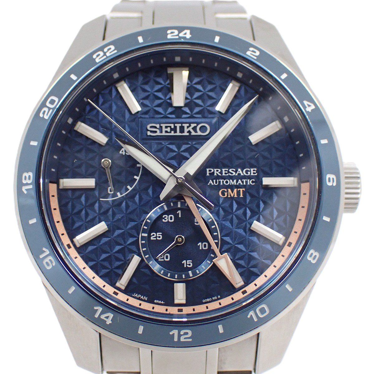 SEIKO セイコー プレザージュ シャープエッジド GMT 自動巻き メンズ 腕時計 青文字盤 SARF 001 6 R 64-00 C 0