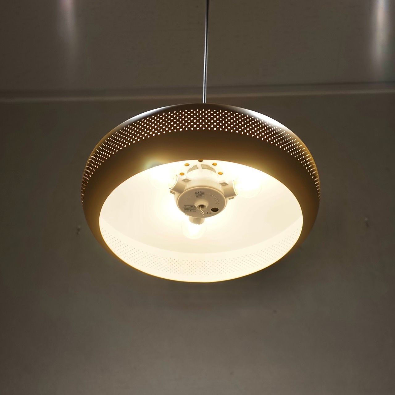 無数の小さな穴が開いたシェードから、やわらかな光がふんわりと広がり、空間に穏やかな陰影を描き出します。