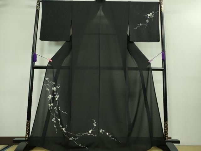 平和屋着物 上 夏物 訪問着 絽縮緬 蔦の葉文 黒地 金彩 kh 5
