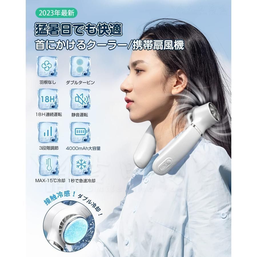 首掛け扇風機 羽なし ネッククーラー 携帯扇風機 冷却プレート 瞬間冷却 60°送風 3段階風量調節 静音 軽量 急速充電式 熱中