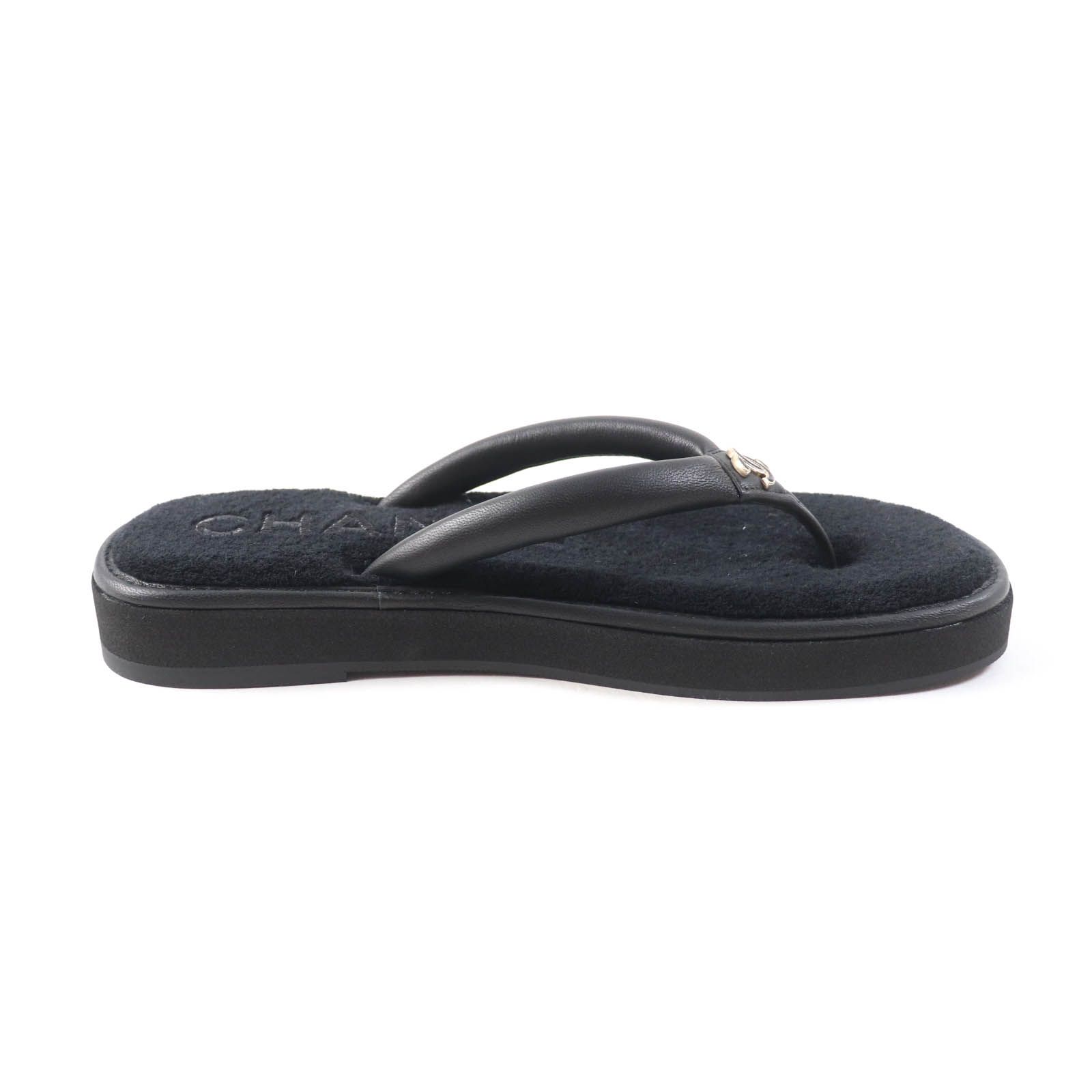 CHANEL シャネル G 45517 ココマーク金具付 レザー使い トングサンダル ビーチサンダル ブラック 39 箱 保存袋付き イタリア製 レディース