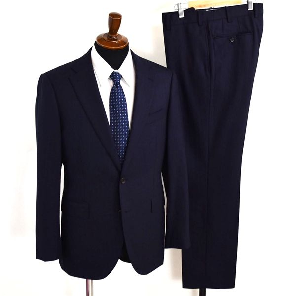 HILTON 110’s生地 2パンツ 2つボタン シングルスーツ M A 6 ダークネイビー ストライプ ノータック 袖口4つ釦 本切羽 115100 春秋 5 XJ 016 メンズビジネス 202510
