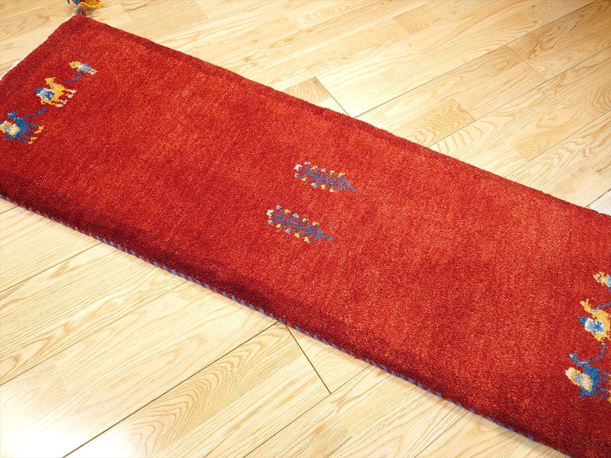 鮮やかな茜色が印象的なペルシャギャッベのミニランナー。
