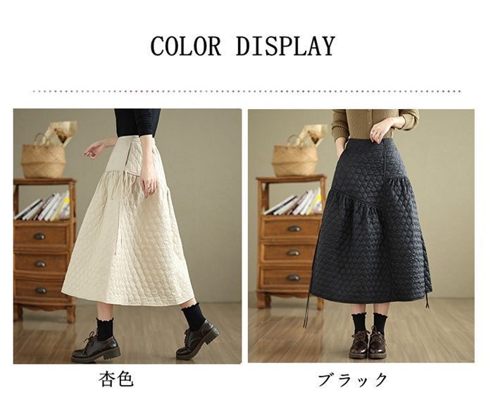 スカート レディース フ 秋冬 あたたかい 中綿 キレイめ ロングスカート Aライン キルティング きれいめ 防寒 暖かい ウエストゴム 通勤 milyx 1207