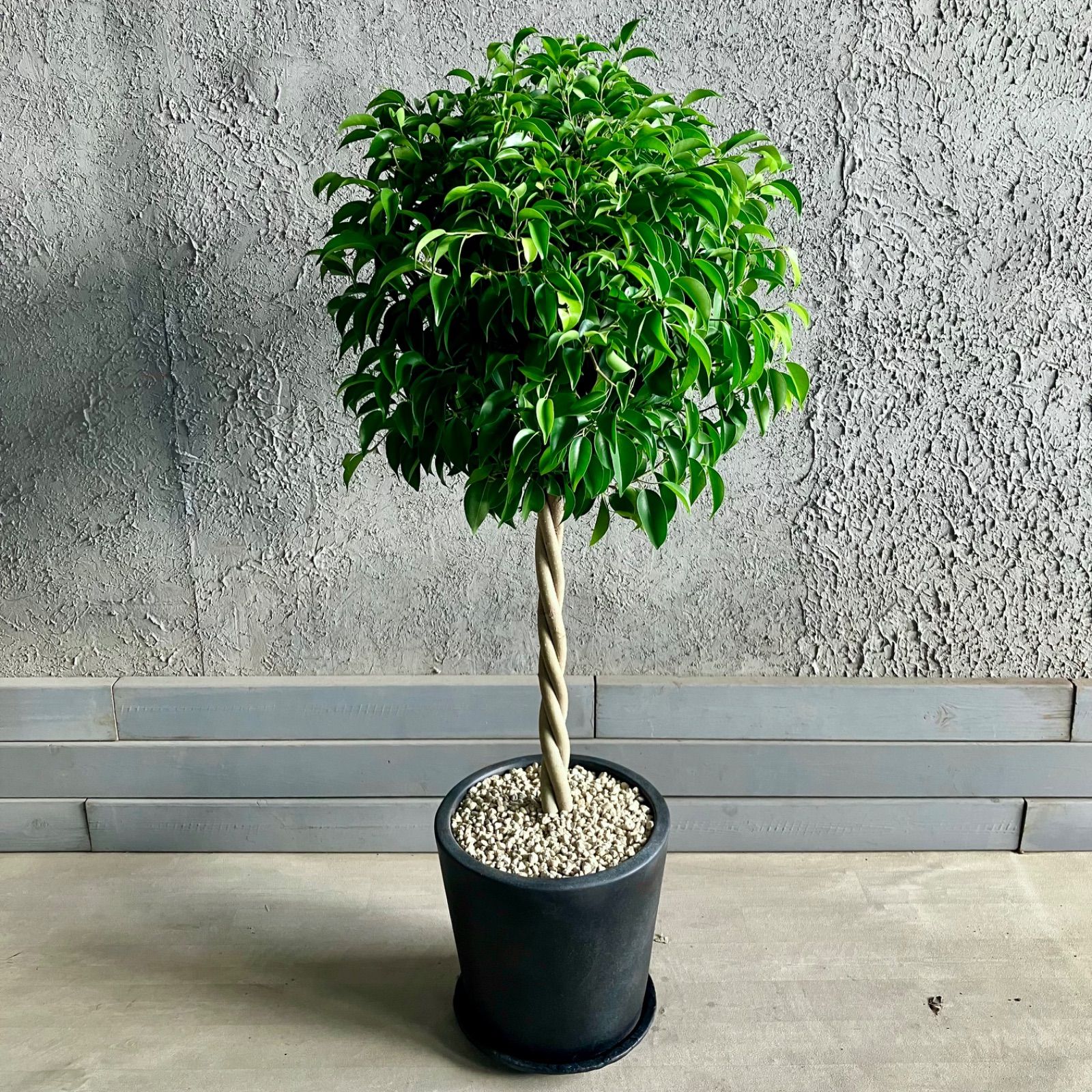 ねじり仕立て フィカス ベンジャミン 10号 テラコッタ鉢植え アンティーク風 受け皿付き