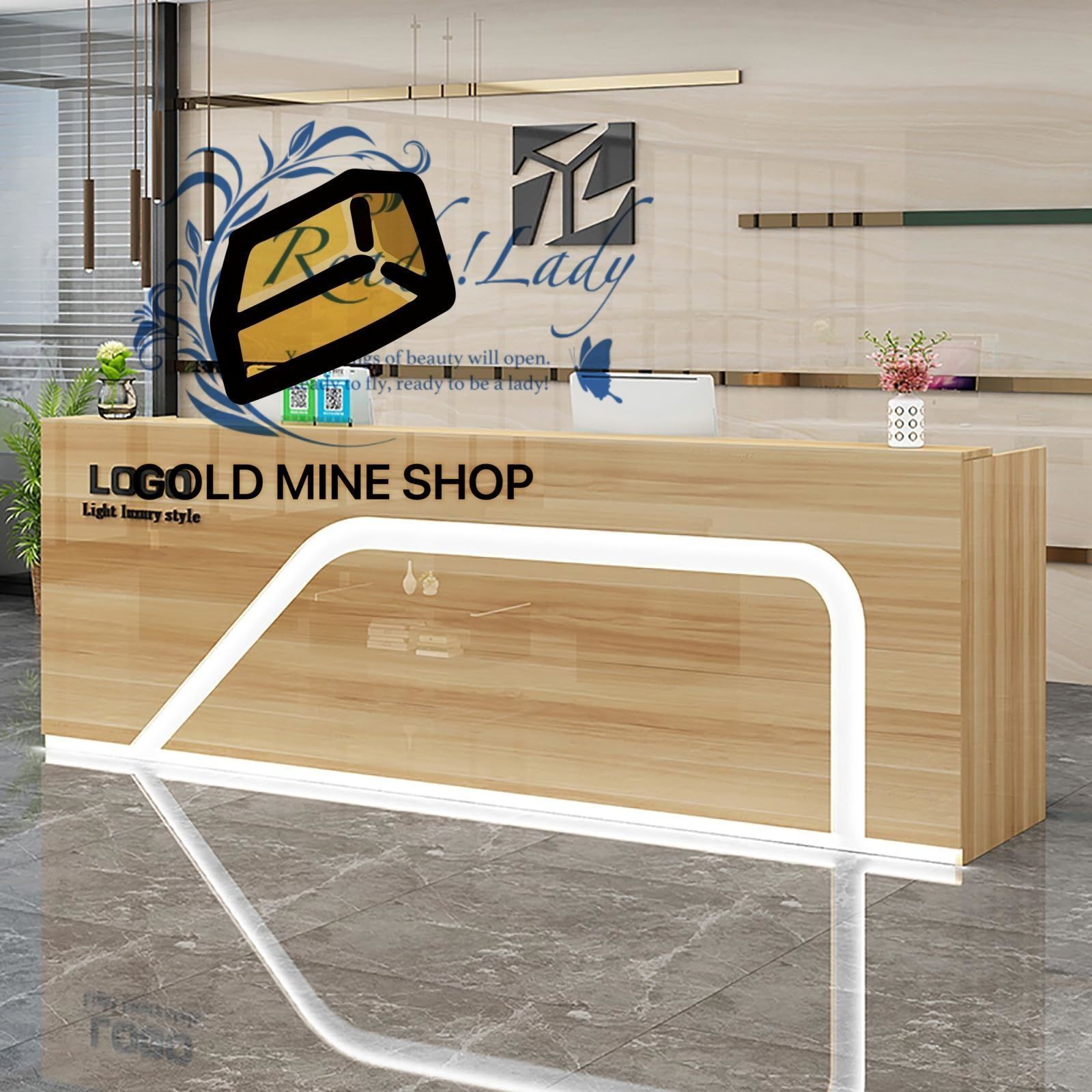 【おしゃれな曲線デザインとLED雰囲気灯】ユニークな曲線デザインとLED雰囲気灯が組み合わさり、現代的でおしゃれな雰囲気を演出します。美観だけでなく、実用性も兼ね備えた理想的な受付台です。