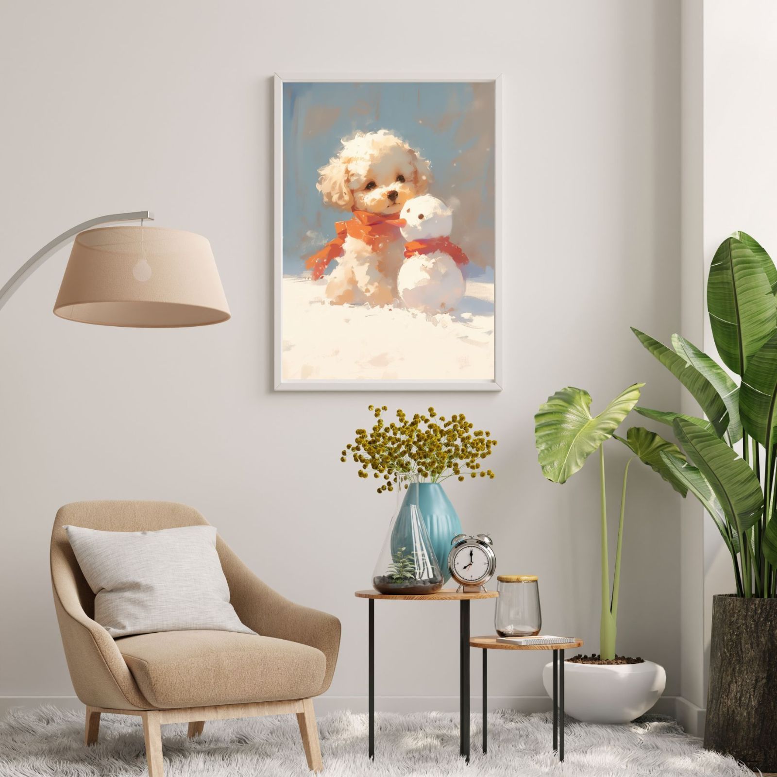 かわいいマルプー犬(マルチーズ&トイプードル) のドッグアートで、寒い冬も心がホッと温まります。