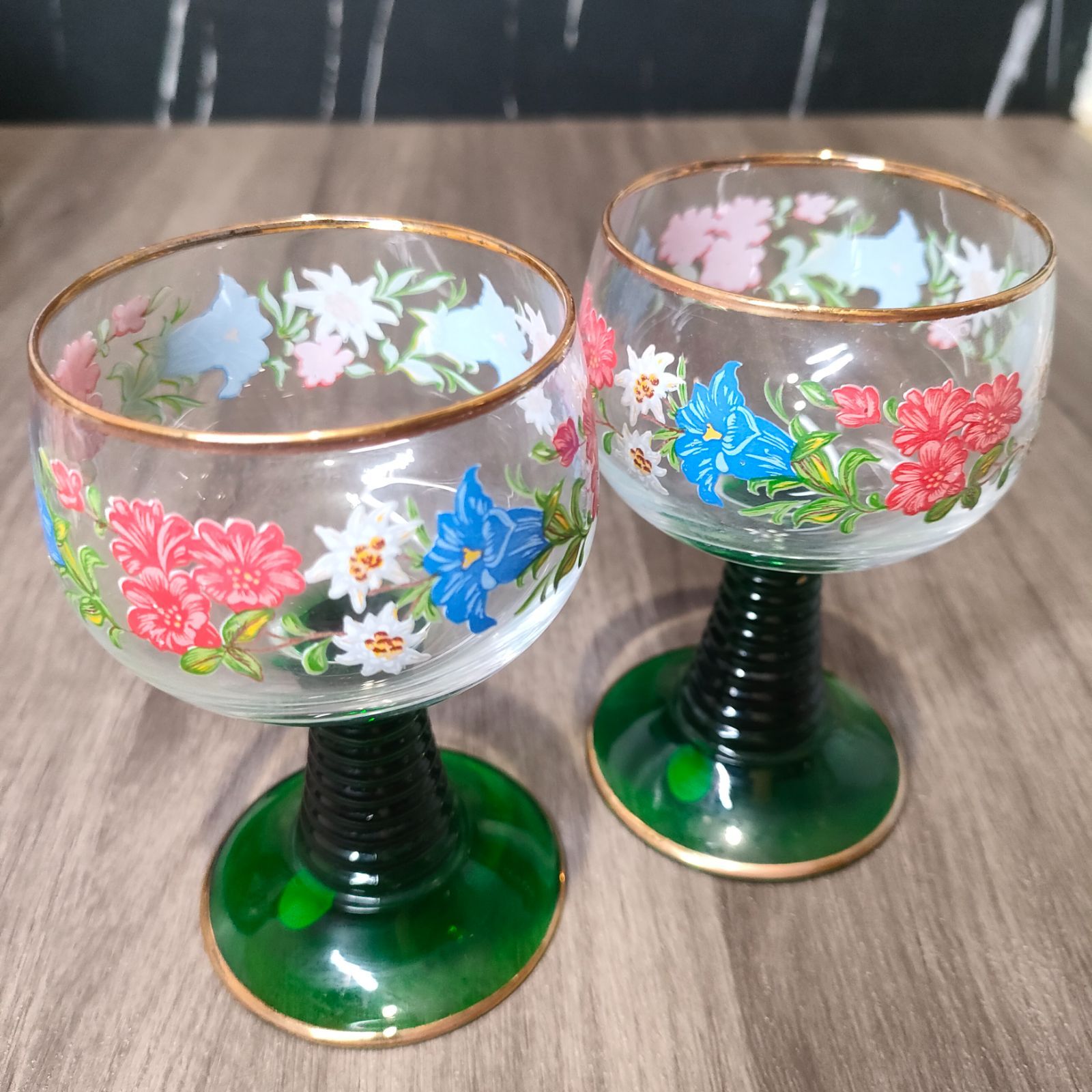 11 西ドイツ ボックリング レーマー ワイングラス 2客セット ドイツ製 ガラス アンティーク Vintage グラス インテリア キッチン 緑 グリーン アルコール 酒器 聖杯