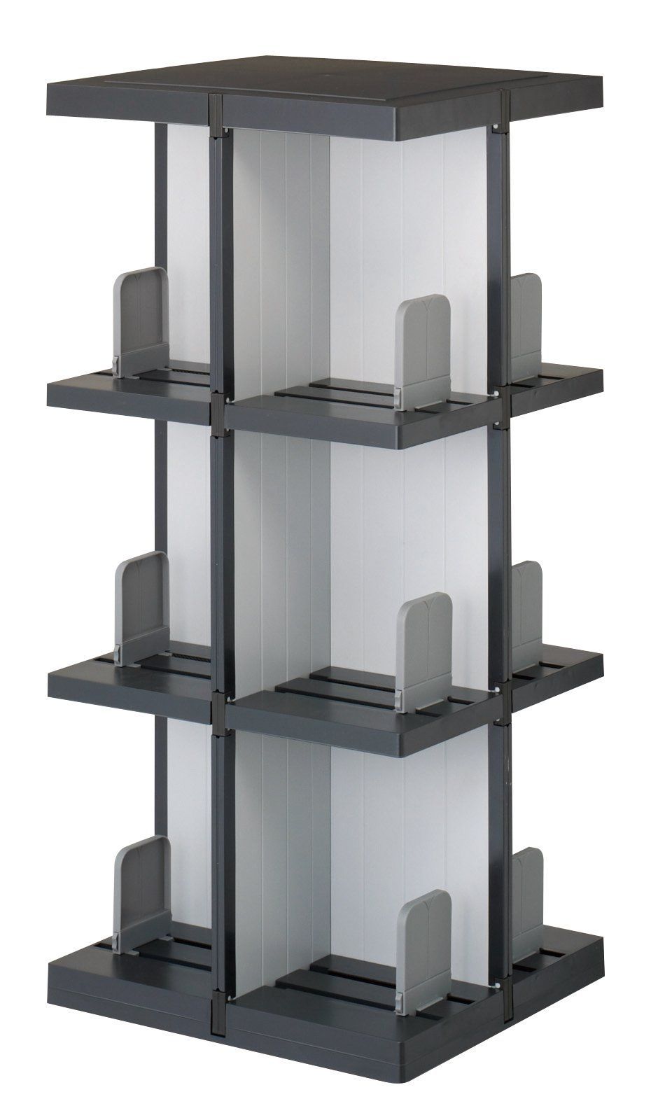 素材・材質:天板・棚板・ベース台・回転板/ハイインパクトスチロール 仕切り板(大・小)/スチロール スライド式ストッパー・上下ストッパー/ポリプロピレン 回転コマ/ナイロン すべり止めキャップ/ポリエチレン ネジ/スチール
