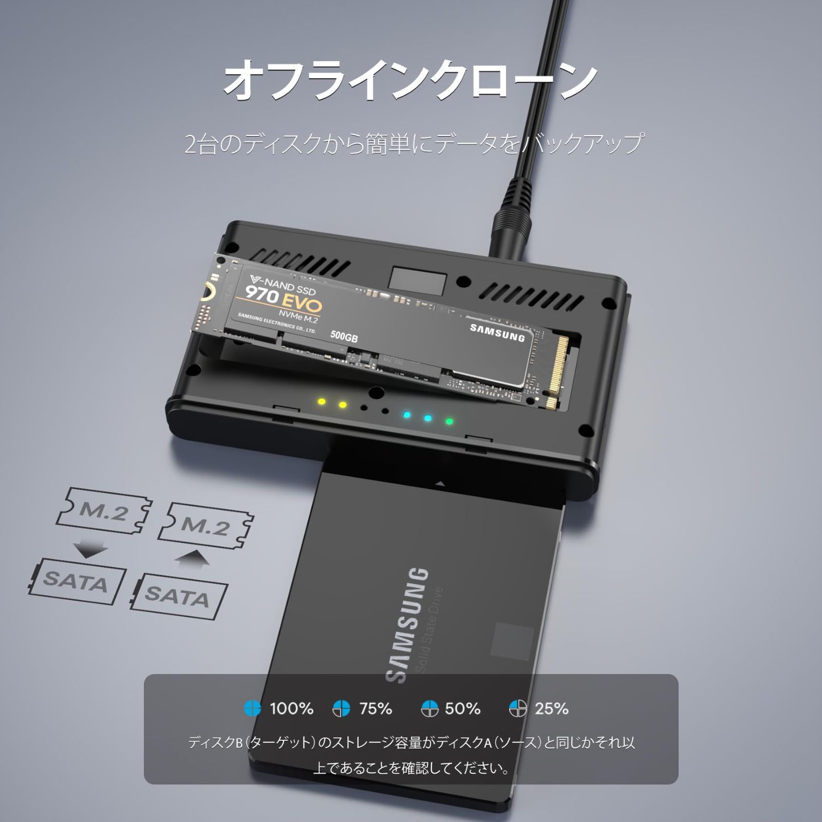 在庫 10 Gbps高速データ転送 外付けケース Gen 2 3.2 クローン オフラインコピー機能付き USB Type-C A Mキー B スタンド 2.5 3.5インチ 両対応 SATA HDD SSD とSATA M