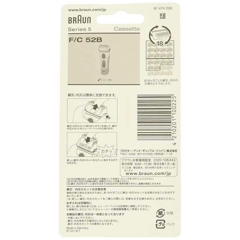 ブラウン 替刃 旧シリーズ5 シェーバー F C 52 B-b ブラック .co.jp 本来の性能を 発揮 ブラシ付き 1
