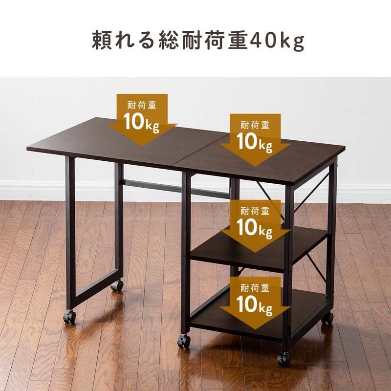 キャスター付き オフィスデスク 簡易デスク 3段収納ラック 折りたたみデスク 学習デスク ダークブラウン パソコンデスク TopCloud