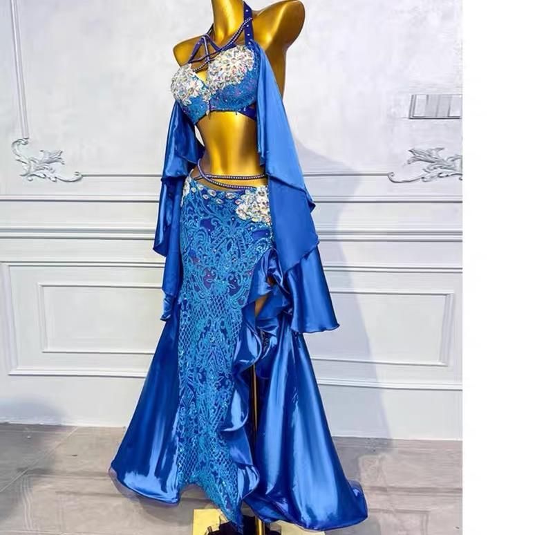 イズ ベリーダンス衣装 ブラベルトスカートセット 東方風 ベリーダンス 衣装 セット ブラジャーと魚尾スカート スパンコールビーズ刺繍 舞台用 2 選択