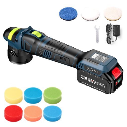 Eliklivポリッシャー充電式電動ポリッシャーダブルアクション75 mmミニポリッシャー車バイクサンダポリシャーコードレス6段階変速2000-6200 RPM恒定回転速度4000 mAh大容量バッテリ