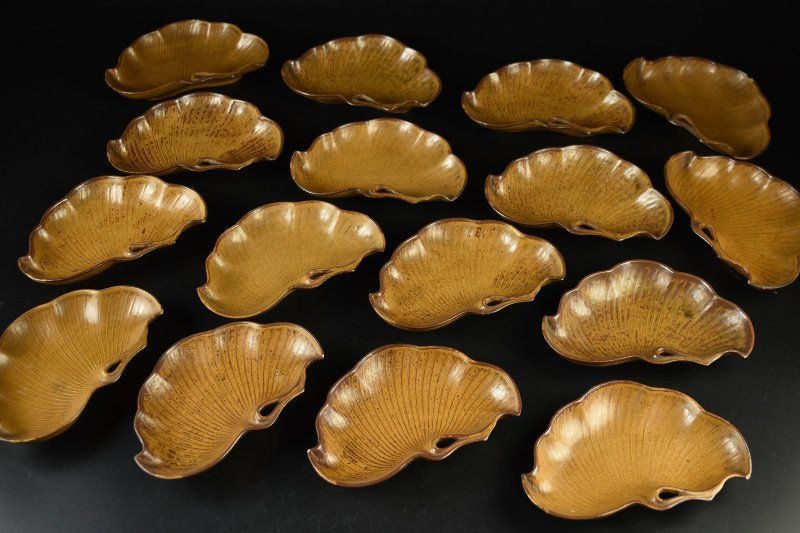蔵A 5467 a 九谷焼 葉形皿 平向付 十六客