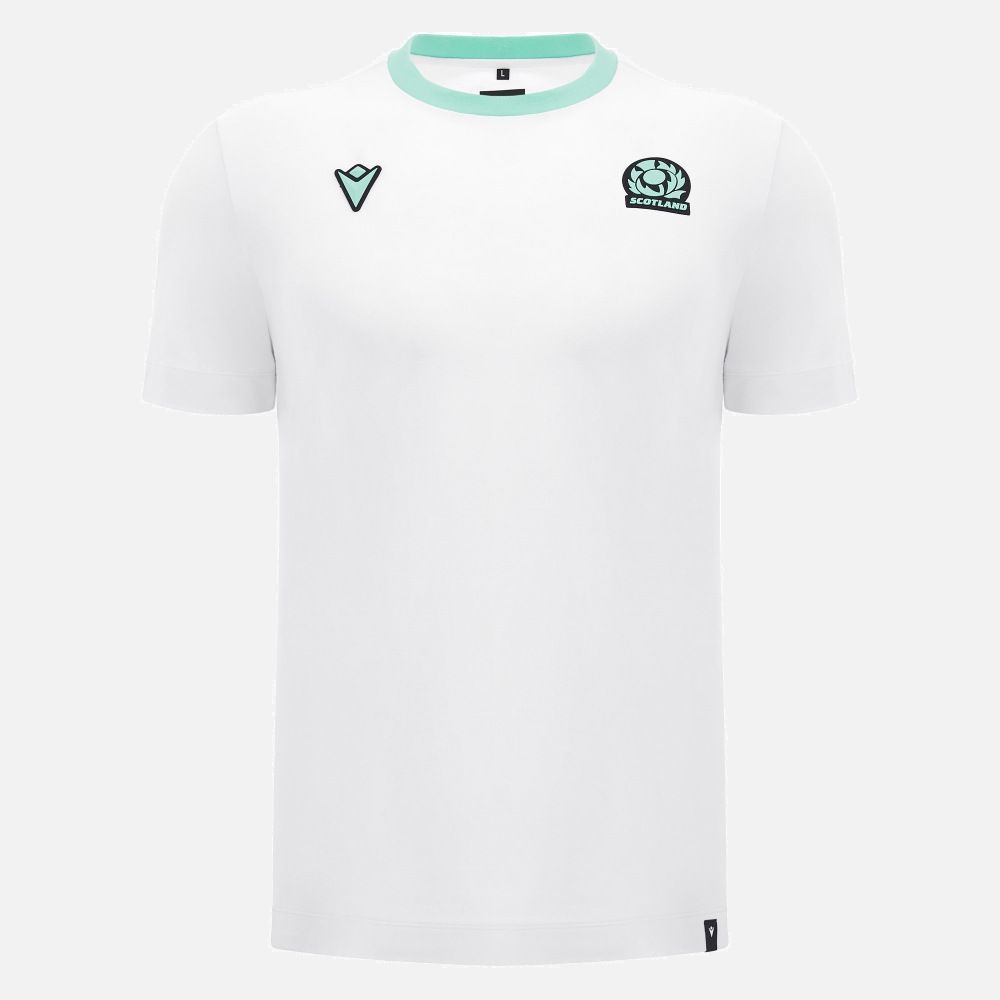 マクロン S M L XL 4 5 ラグビー スコットランド代表 2025 スリムフィット コットン トラベル Tシャツ 白 ホワイト 緑 グリーン モデル 日本未発売