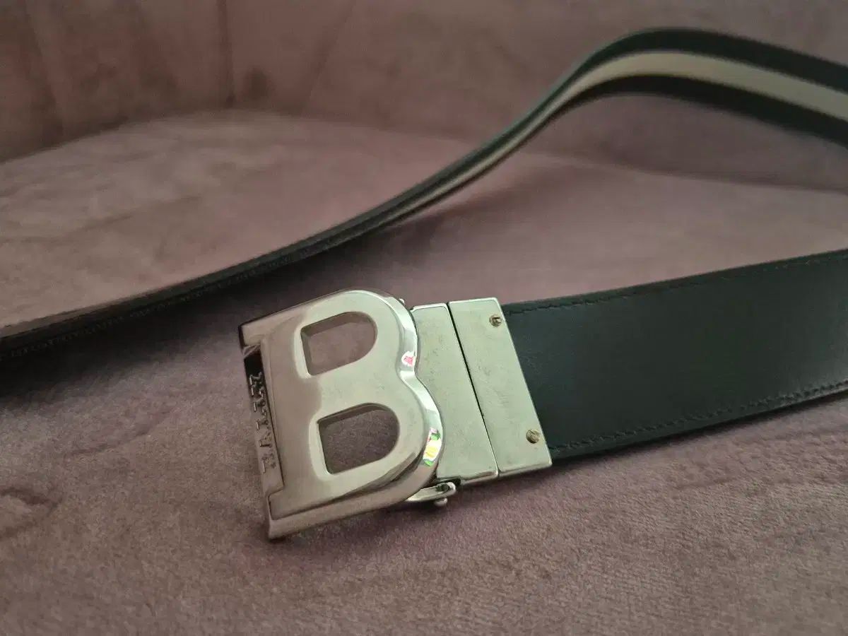 BALLY バリー メンズ ベルト 出品. ブラック カラー バターンに 白 ストライプが POINT ポイントです. バックルに B ロゴが 陰刻されています.