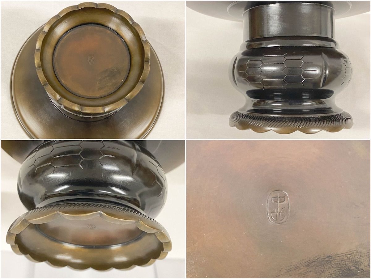 KK 195 池坊 薄端 中光 銘 銅製 花器 直径約23 cm 重さ4.4 kg 華道具 伝統工芸 骨董 生け花 フラワーベース 金属工芸