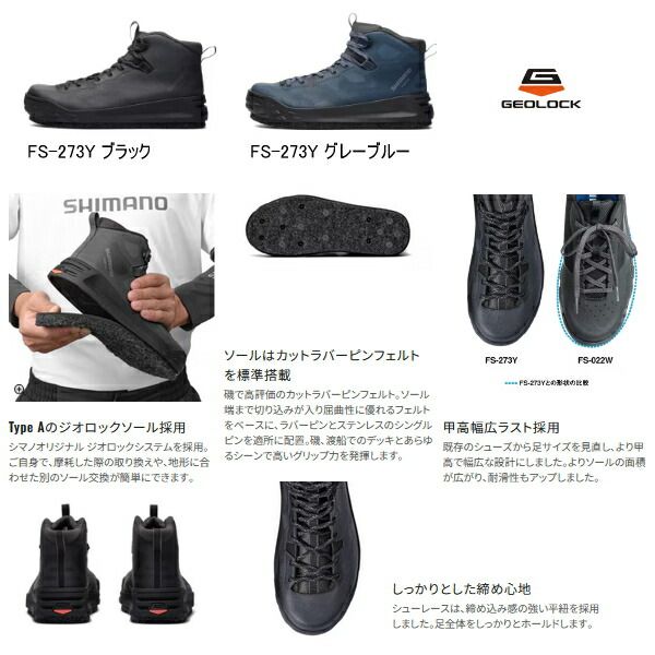 ≪ 25年 新商品 ≫ シマノ ジオロック ゲームシューズ カットラバーピンフェルト FS-273 Y グレーブルー 27.5 cm