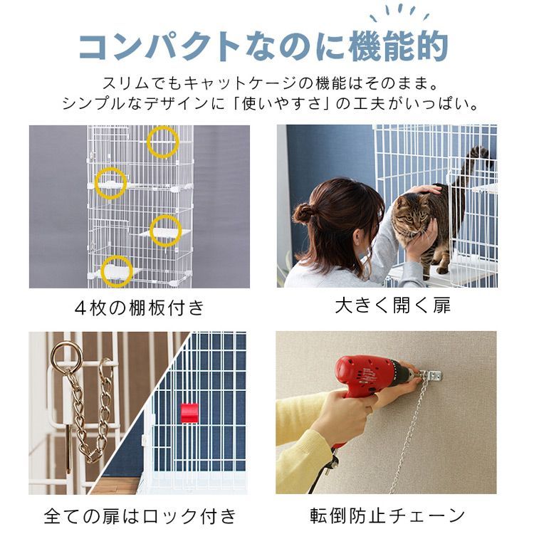 お部屋にスッキリおけるスリムタイプのキャットケージです。