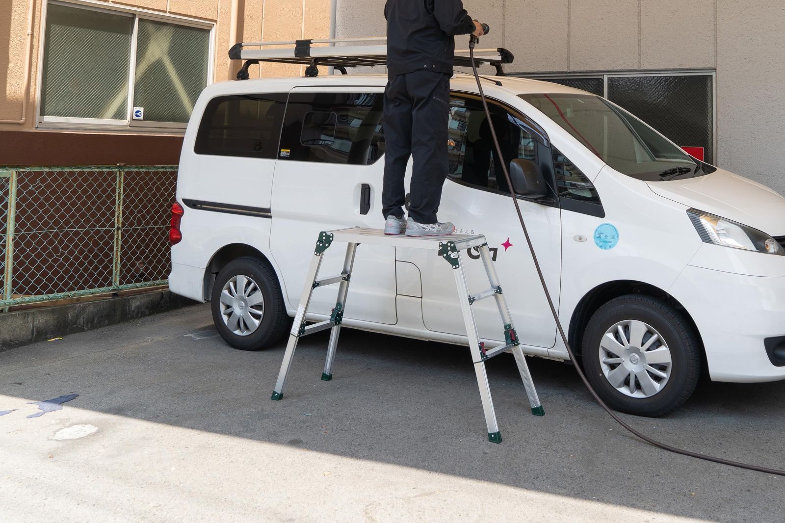 カラー スタンダードタイプの四脚アジャスト式足場台です。高所作業や洗車などにお使い頂けます。