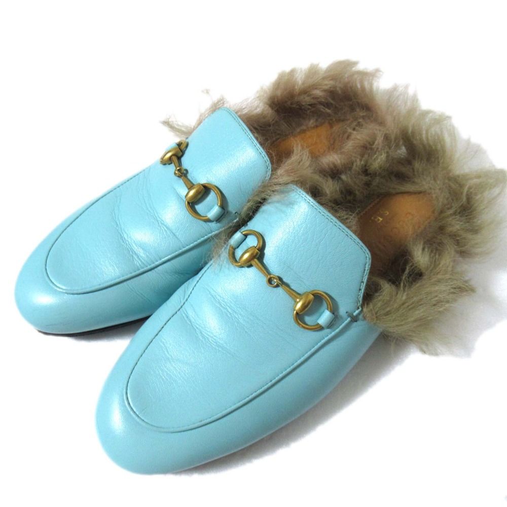 【商品名】GUCCI グッチ プリンスタウン ホースビット ファーライニング ミュール サンダル サイズ37 約24cm ライトブルー