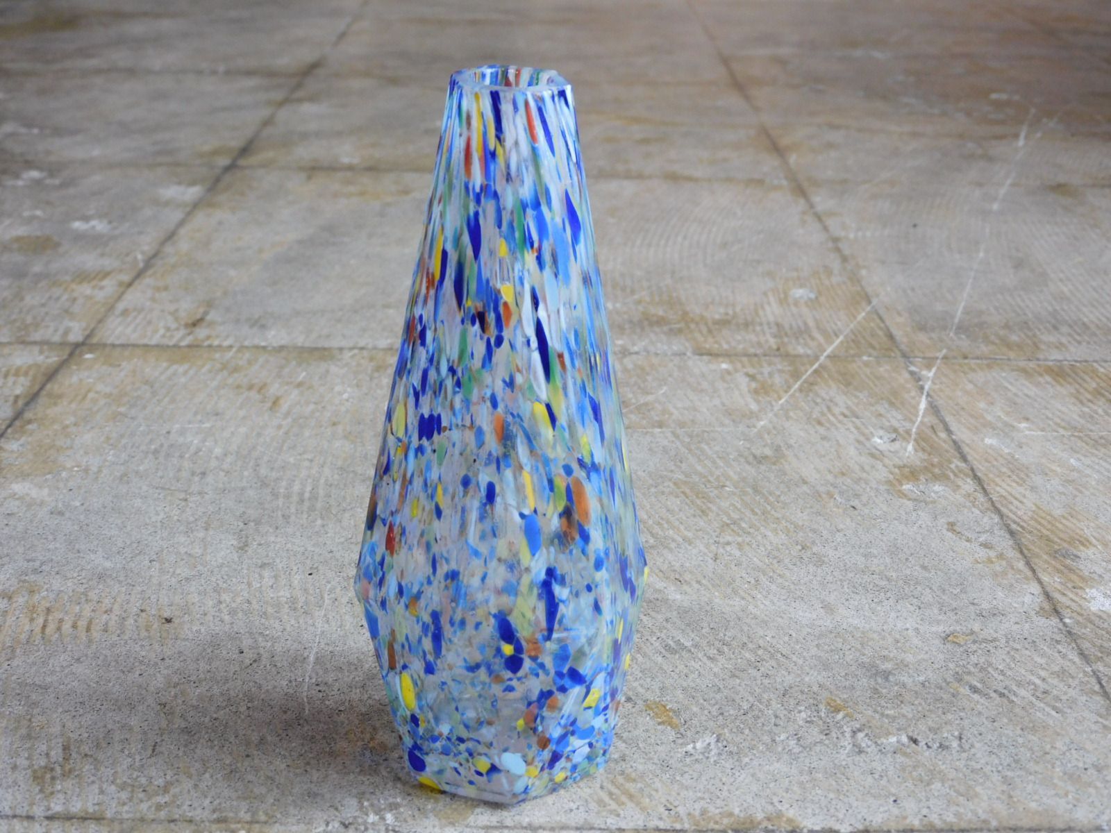 ふるいガラス花瓶 一輪挿し 面取りに吹雪 ウラン発光 HK-a-05536 アンティーク 氷コップ 和硝子 ぺろぺろ レトロガラス
