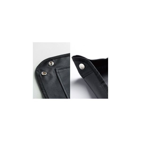 ■四隅のホックと4個所の面ファスナーでシートのフチを自立させることで、土や小石が入り込みにくく工具や部品の紛失を防止します。